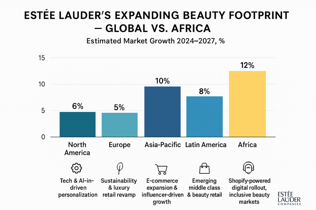 Experts say as Africa’s middle class grows and digital adoption accelerates, Estée Lauder’s Shopify alliance positions the company to tap into one of the world’s most promising and underserved luxury markets — blending global innovation with local aspiration.